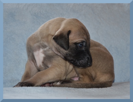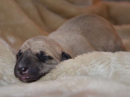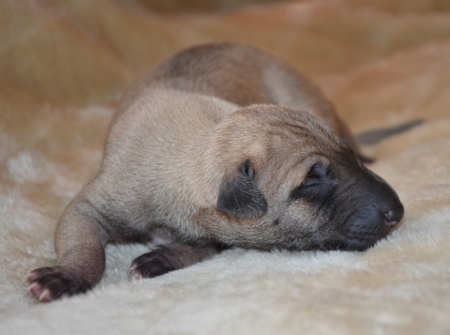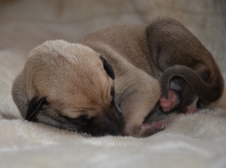 03.November kam unser G-Wurf auf die Welt. Der Vater Dagash ist bisher unser erfolgreichster Ksar Ghilane und zur Zeit einer der besten Allrounder bei den Sloughi Rüden. Er macht in allen 3 Disziplinen, sei es Rennen, Coursing oder auch Ausstellung, eine super Figur und konnte dementsprechende Erfolge einfahren. Wir denken, seine Titel sprechen für sich! Die Mutter Hadiyyah ist ebenfalls etwas ganz Besonderes! Ausgestattet mit marokkanischem (Mutter Amal) und algerischem (Vater Saff) Blut ist sie ein waschechter Import, der sich wirklich sehen lassen kann! Coursing ist ihre Leidenschaft und da sie noch recht jung ist, steht sie für den DWZRV Schönheitschampion noch in der Warteschleife. Nun sind wir sehr gespannt auf die Entwicklung der Welpen! |