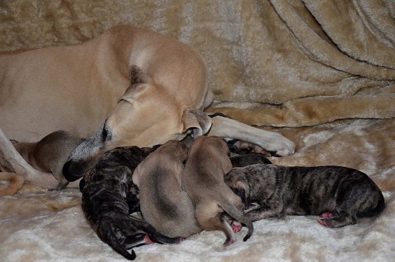 Februar erwarten wir unseren J-Wurf. Mama Chameh ist eine Hündin, die wir in den letzten Jahren kennen und lieben gelernt haben. Sie gehört unserer Freundin und nun auch Mitzüchterin Kristina Kosmas. Chameh besticht durch ihre tolle helle Farbe und vorallem durch ihren wahnsinnig liebenswürdigen und ausgeglichenen Charakter! Es leben bereits Kinder und Kindeskinder von ihr in unserer Familie und bereichern unser Leben! Deshalb freuen wir uns sehr, dass sie nun bald auch bei uns Mutter wird! Als Vater haben wir uns für den eleganten und gestromten Rüden Joel entschieden. Er gefiel uns schon immer sehr gut, ebenso ist er auch ein ganz lieber und gutmütiger Kerl! Wir versprechen uns aus dieser Verpaarung typvolle & charakterfeste Sloughis in den Farben, hellsand/sand & hellgestromt/gestromt. |