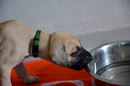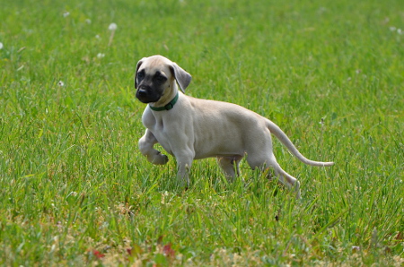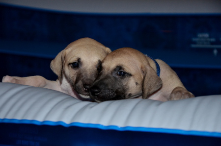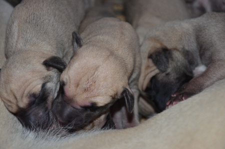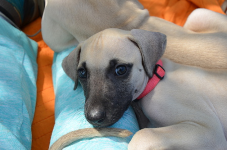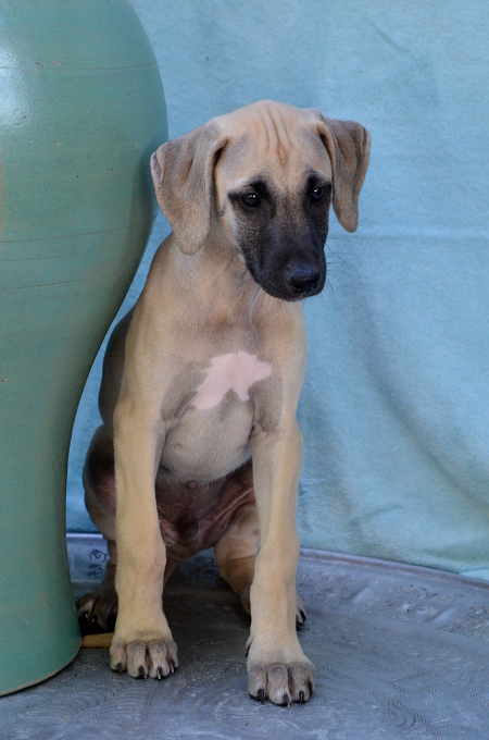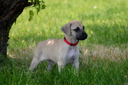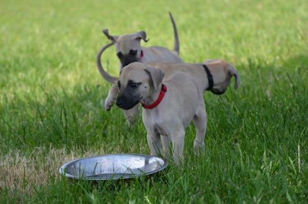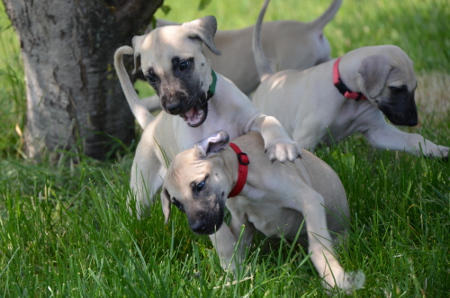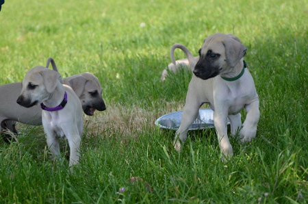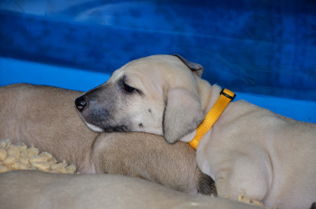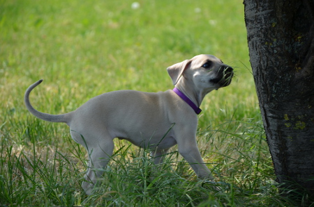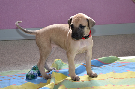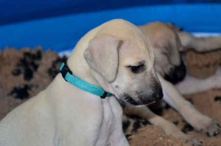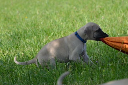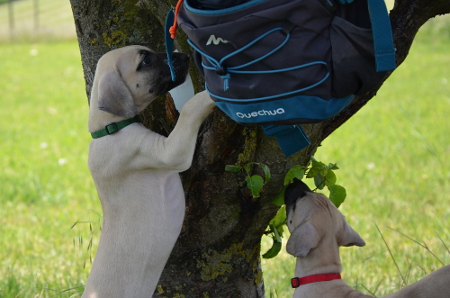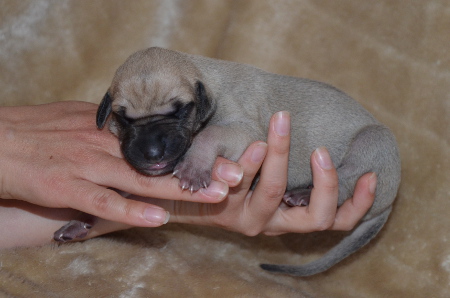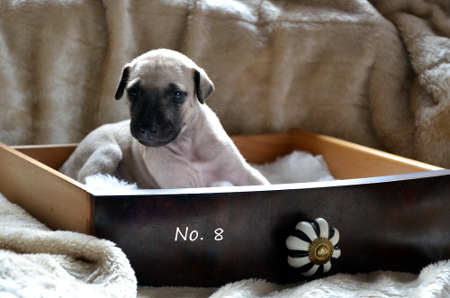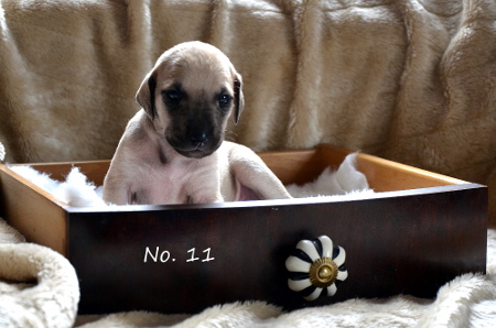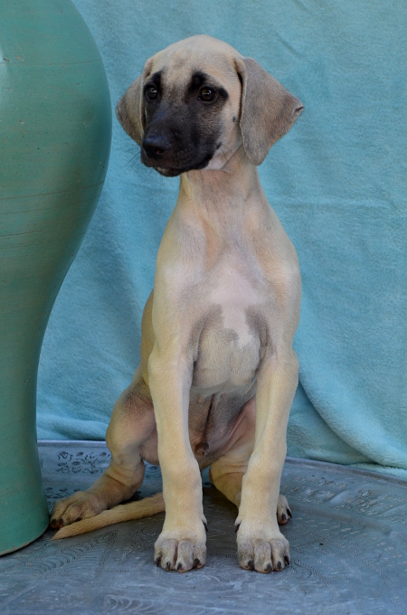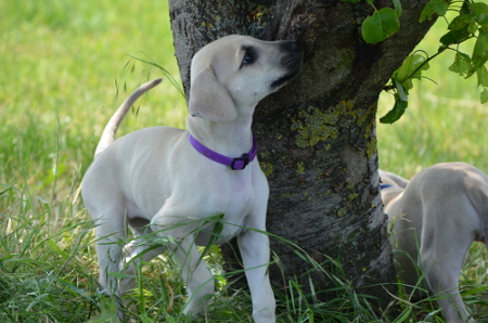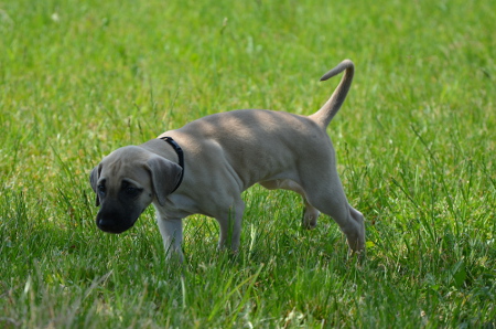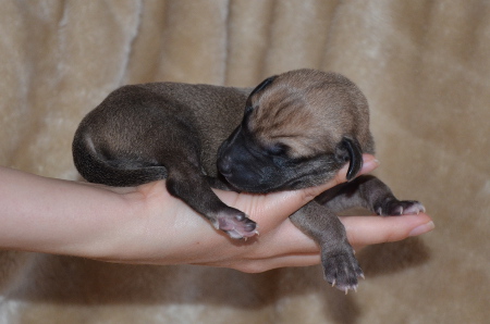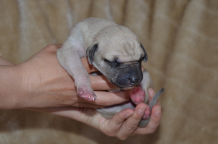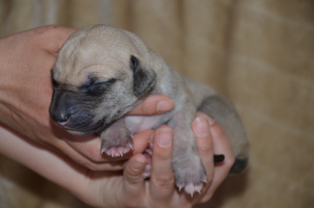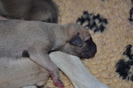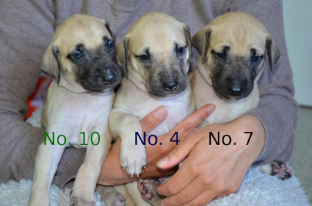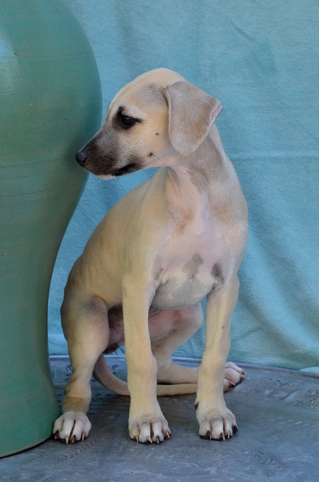 unsere 11 Aprilscherze auf die Welt. Es sind 5 Rüden und 6 Hündinnen. Dieses Mal fiel uns die Wahl einen passenden Rüden für unsere Izzi zu finden, besonders schwer! Izz al-Din ist eine große und kräftige Hündin. So sollte der Rüde eher elegant und nicht zu groß sein, aber dennoch ein Rüde darstellen. Nach langer Suche und vielem Hin und Her haben wir in Kamran dann einen mehr als würdevollen Vertreter gefunden! Izzi trägt unser heißgeliebtes nordafrikanisches Blut weiter und Kamran stammt aus den besten deutschen Linien. Wir hoffen auf substanzvolle und gesunde Welpen aus dieser Verpaarung! Mama Izzi macht mit ihren 11 Kindern einen verdammt guten Job - alle wachsen und gedeihen prächtig! |