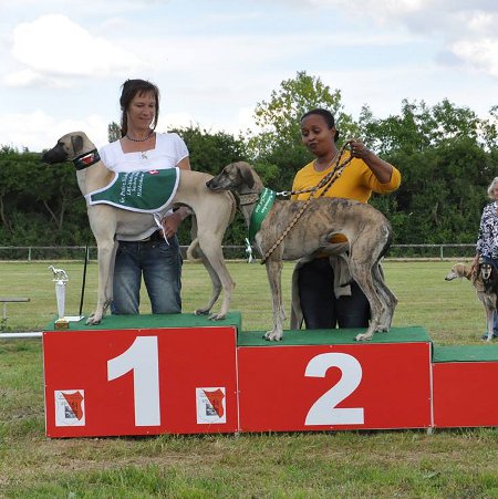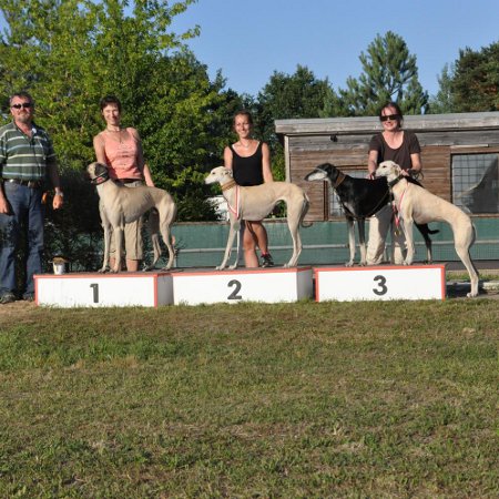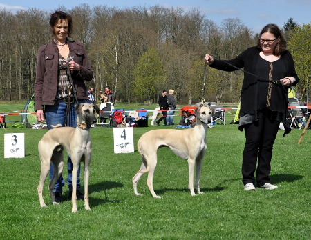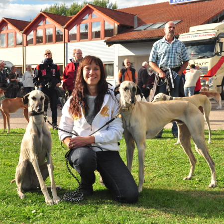 Deutschen Coursing Sieger am 19. September in Grab wurde Ganoosh Areen Ksar Ghilane zweiter und erhielt sein 2. CACC. Es war eine schöne Veranstaltung und sie wurde gleich für ein kleines Familientreffen genutzt. Im Bild mit Halbschwester Sahsheer Uhnari. |