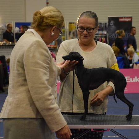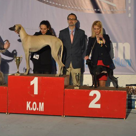 März ging es für Feltou Ksar Ghilane für 1 Woche nach Kalamata/Griechenland (Frauchens Heimatstadt). Dabei wurden am 26. und 27. März noch 3 Ausstellungen mitgenommen, die letzten Endes zum Griechischen Champion führten! Anschließend die ausführlichen Ergebnisse und ein paar Impressionen: 26. März CAC Special Gruppe 10 Richter: Hr. Anthanopulos/GR V1, CAC, BR & BOB 26. März CAC Richter Rasse & Gruppe: Hr. Kostopoulos/GR V1, CAC, BR, BOB & BIG 2 27. März CAC Richterin Rasse & Gruppe: Fr. Bobikova/RUS V1, CAC, BR, BOB & BIG 3 |