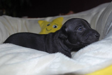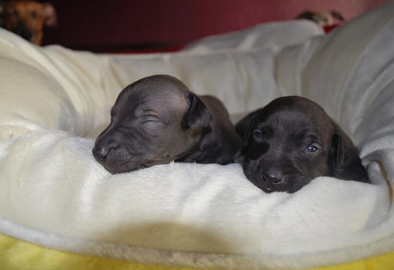 Feltou Ksar Ghilane wurde zum ersten Mal Vater! Die Hündin Poslusjnye Wihri Ikrá brachte am 29. Dezember in Holland 4 proppere schwarze Rüden zur Welt. Wir wünschen der Mama und den Kindern weiterhin alles Gute! |