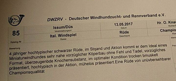Größe! :-) Feltou Ksar Ghilane wurde nämlich Windspieljahressieger 2017 und Bester Rüde! Was ein Erfolg! Wir sind super stolz auf unsere schwarze Granate! Vielen lieben Dank Kristina, dass du es möglich gemacht hast! |