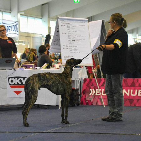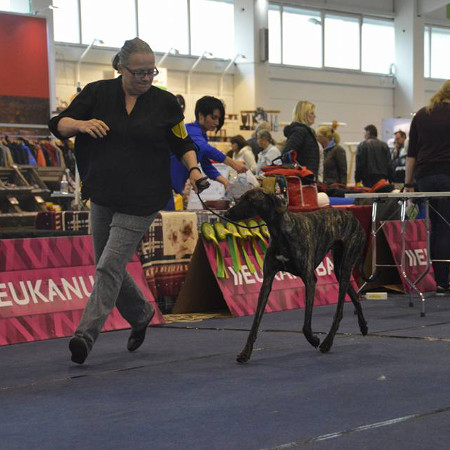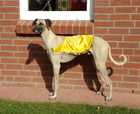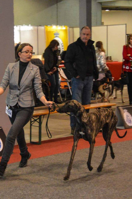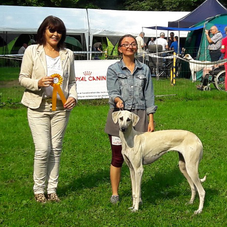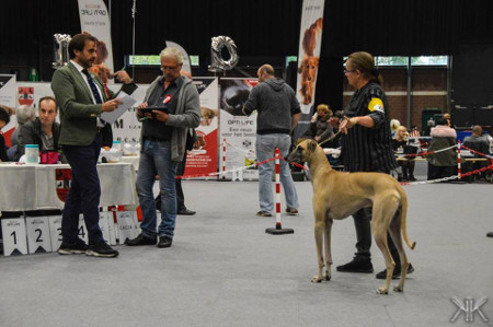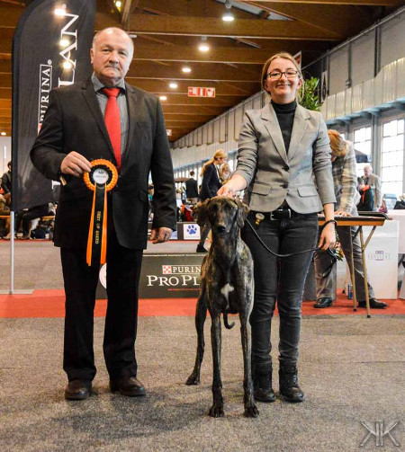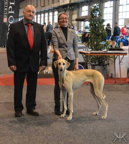 Brüssel Winner am 16. Dezember Habibi Hafid al Vaha Ksar Ghilane - V1, Jg. CAC, BeNeLux Junior Winner BE, Jugend BOB, Bester Rüde & BEST OF BREED Izz al-Din Ksar Ghilane - V1, Jg. CAC, BeNeLux Junior Winner BE & Beste Hündin Besonders gefreut haben wir uns über das BOB von Habibi, endlich wurde auch mal die Farbe gestromt gewürdigt! :-) |