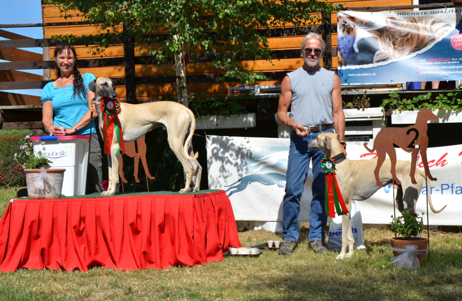 Lorch am 09. September V1, JCAC, JVDH, JBOB, Jugend Best in Show 2 - Habibi Hafid al Vaha Ksar Ghilane V1, JCAC, JVDH - Izz al-Din Ksar Ghilane Habibi erfüllt mit nur drei Ausstellungen die Bedingungen für den DWZRV-Jugendchampion! |