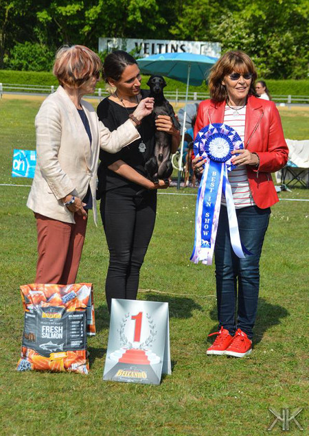 Show Darmstadt am 30. Juni Zum ersten Mal nahmen wir an einer Nachtshow teil. Tja, was soll ich sagen...? Die Nacht war sehr, sehr lang, aber erfolgreich. Feltou Ksar Ghilane - V1, Bester Rüde, BOB & BEST IN SHOW III |