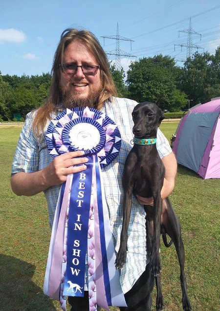 - Windhundspezialausstellung Hrusika Feltou Ksar Ghilane - V1, CAC 27. Mai - CAC Hrusika Feltou Ksar Ghilane - V1, CAC Nun erfüllt Peppi auch die Bedingungen für den Slovenischen Champion - alle 5 CAC's hat er beim ersten Anlauf bekommen! Toll gemacht! |