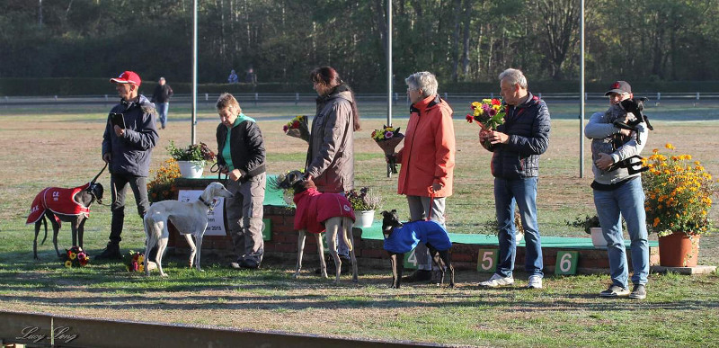 Coursing Landstuhl am 27. Oktober 1. Platz - Habibi Hafid al Vaha Ksar Ghilane (7 Sloughis am Start) Habibi schlug bei seinem allerersten Coursing ein wie eine Bombe und er konnte zu unser aller Überraschung den Sieg einheimsen. Dummerweise habe ich vergessen die entsprechenden Bewertungen in seinen Hundepass eintragen zu lassen, weshalb er leider kein CACIL & CACC bekam. |