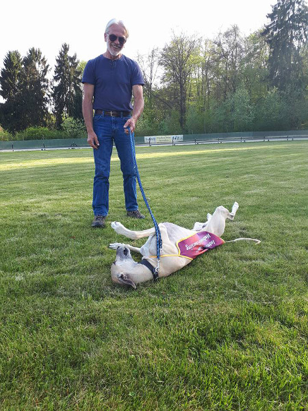 Deutscher Coursingsieger in Grab am 15. September 1. Platz und somit DCS 2018 - Ghanem Ksar Ghilane Ein emotionales Wochenende liegt hinter uns... Ein Wochenende, bei dem Leid und Freude fast untrennbar nebeneinander lagen. Nachdem ihm die WM in Awans verwehrt blieb, war dies Ghanems erster Start ohne Heinz. Und er hat mal wieder alles gegeben! Zum zweiten Mal konnte Ghanem den Titel für sich entscheiden. Mit Wehmut betrachte ich mir diese Bilder - Heinz fehlt. Wie sehr hätte er sich über die Leistung seines Hundes gefreut - er war immer sein ganzer Stolz. Aber wer weiß, vielleicht beobachtet er aller von weiter Ferne - mit einem Lächeln im Gesicht. Vielen lieben Dank an Christel und Michael Koch - ohne Euch wäre nichts möglich gewesen und für die bewegenden Aufnahmen! Ein Hoch auf Uwe Wittka - der Fels in der Brandung! Und ein herzliches Dankeschön an Sven Fuchs, der Ghanem so souverän im zweiten Lauf gestartet hat! |