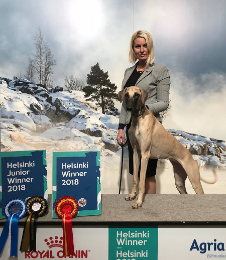 Ausstellung Helsinki/Finnland am 15. & 16. Dezember Jelani bint Chami Ksar Ghilane Tag 1 - V1, CAC, Helsinki Junior Winner, JBOB, BH, Helsinki Winner & Best of Breed Tag 2 - V1, Finish Junior Winner & JBOB Was ein großartiges Wochenende für Jelani & Maria! Ihr wart mal wieder spitze! Herzlichen Glückwunsch! |