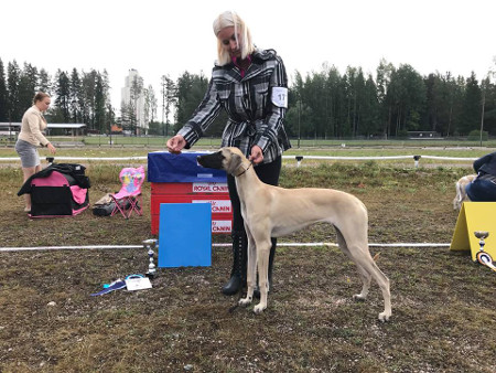 Show Orimattila/Finnland am 25. August Jelani bint Chami Ksar Ghilane VV1, Best of Breed & BEST OF GROUP II Jelani schnupperte nun auch zum ersten Mal Ausstellungsluft und konnte sogleich von sich überzeugen! |