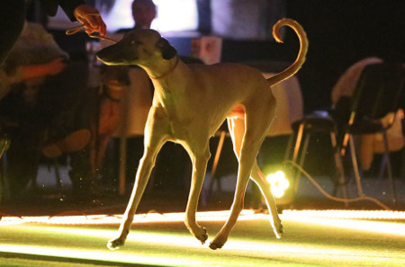 Revanche Gelsenkirchen am 30. September Jedes Jahr veranstaltet Gelsenkirchen eine Revanche der FCI WM/EM. Dieses Jahr nahm Ganoosh Areen Ksar Ghilane daran teil und konnte auch diese mit Platz 1 für sich entscheiden! Schön war auch die Vorabehrung der anwesenden Weltrennsieger 2018, die im Innenraum nochmal einzeln vorgestellt wurden! |
